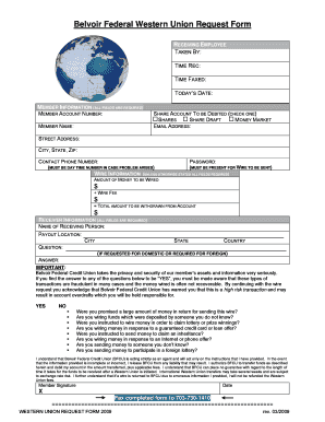 Fillable Western Union Request printable pdf download from data.formsbank.com The western union service allows you to receive or receive money directly in another country. It is advisable to use a secure method when you want to send or send money even if you pay a fee instead of losing all the money. · western union is a well establish and a reliable money transfer q: Fill up the sending money form. Sending money is a very simple and fast process, requiring you only to get in touch with your money's receiver! Fill western union form pdf, edit online. To send money with us, you may need to fill in certain information about yourself and your receiver, depending on which send and receive methods you choose. Download the adobe® acrobat® pdf reader to.